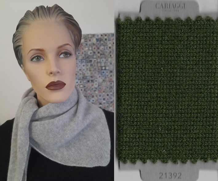 Geliefert wird jeweils die Farbe der abgebildeten Farbkarte. Die weiteren Produktbilder sollen die Wirkung des Dreieckstuch darstellen.