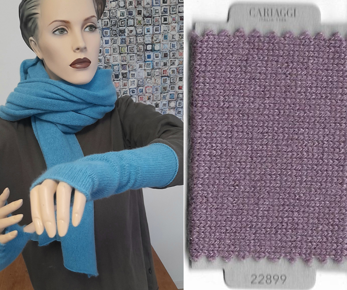 100 % Kaschmir in einer farblichen Abstimmung, aus der auch andere feine Accessoires gestrickt werden können, so das sie ein passendes Set zusammenstellen können.