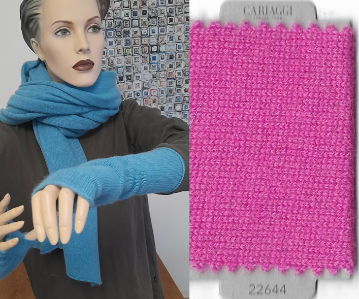 100 % Kaschmir in einer farblichen Abstimmung, aus der auch andere feine Accessoires gestrickt werden können, so das sie ein passendes Set zusammenstellen können.