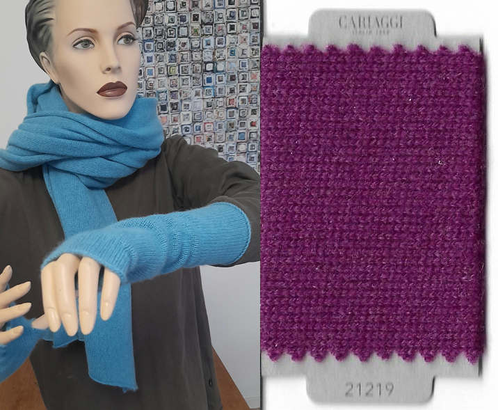 100 % Kaschmir in einer farblichen Abstimmung, aus der auch andere feine Accessoires gestrickt werden können, so das sie ein passendes Set zusammenstellen können.